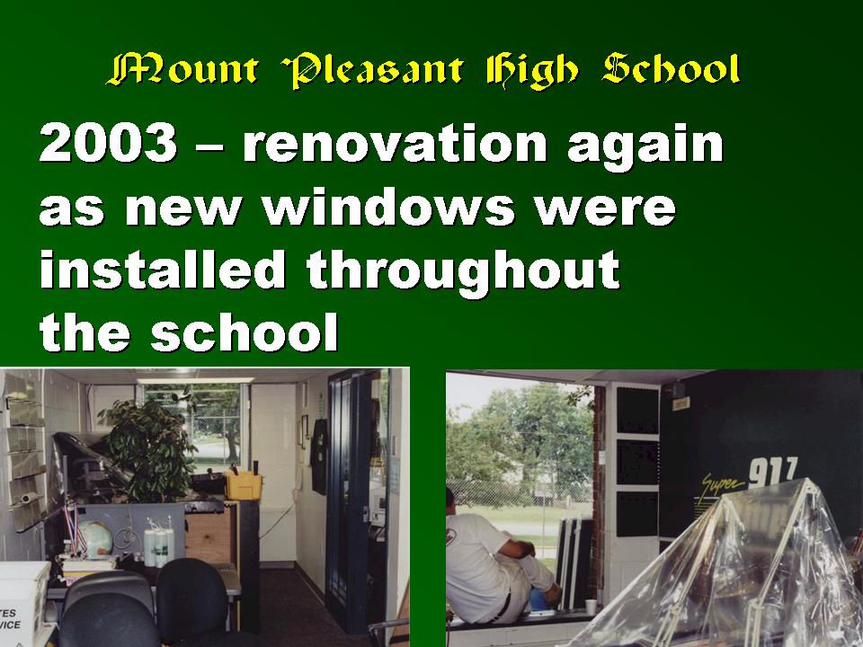 As historian and alumni liaison, I gave many school tours and assisted with reunions. I had been the disc jockey for many reunions and school galas. In the archives, I found audio records of former principals which I played to the crowd amazement. Of course, I always played the school song “All Hail to Thee Mount Pleasant” and fight song.