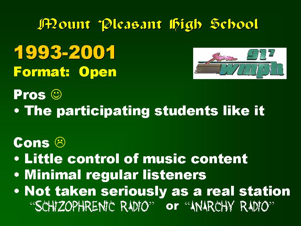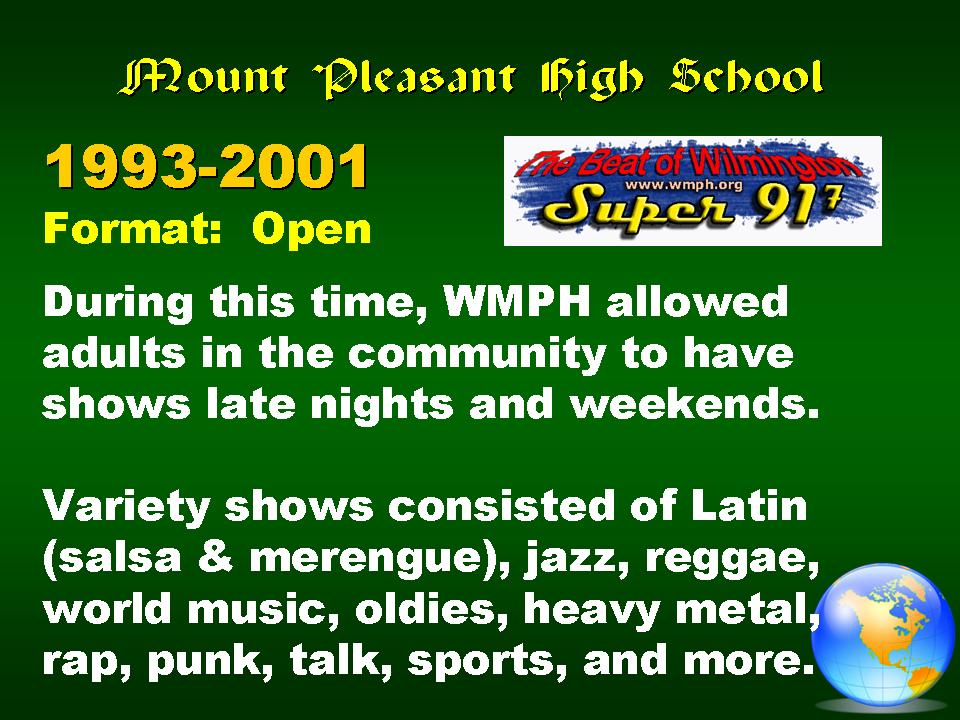 I created this slideshow when presenting the history and my contributions of WMPH radio station. Story also available with text description on Facebook.