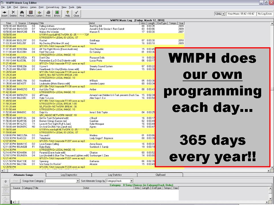 WMPH became a respected radio station within the community broadcasting 24/7 to over a half million potential listeners.