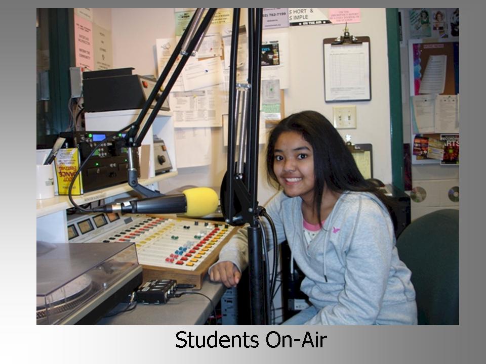 – Coordinate on-air programming (radio shows, announcements, music) and special events (dances, remote broadcasts, field trips)