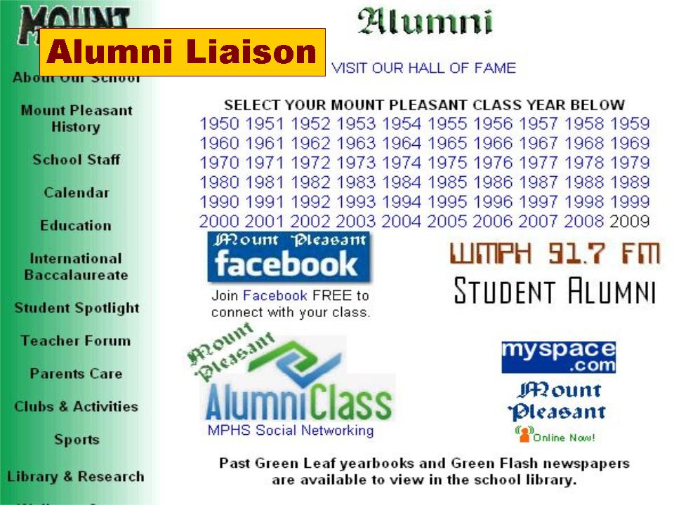 – Instructor, technical adviser, alumni liaison, historian, and public information officer (webmaster) at Mount Pleasant High School (mentor, trainer, educator)