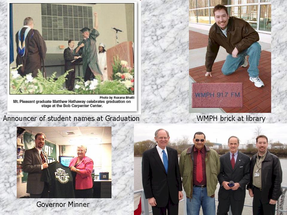 I planned many events for the school district including the 175th anniversary celebration, Mount Pleasant High School building 50th anniversary celebration and WMPH radio 40th birthday gala