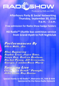 The most challenging and risky venture of my career thus far has been the Dance Radio Network LLC (DRN). I wrote the business plan and formed the company to distribute syndicated programming via satellite to affiliate U.S. stations. As an engineer, I also built a trigger tone automation system so that affiliate localized announcements would play at designated times according to the program clock. After meeting with the president of iBiquity, DRN was later mentioned in an article for quality programming alternatives for HD Radio.