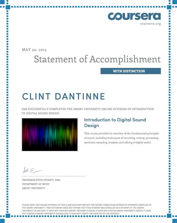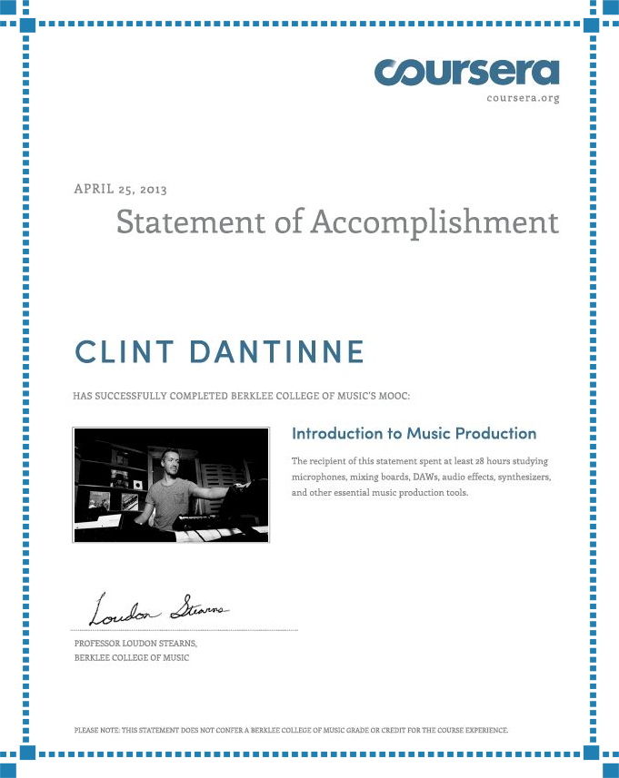 Statement of Accomplishment – Berklee College of Music