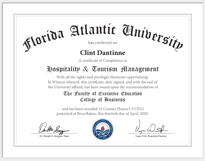 Certificate – Florida Atlantic University