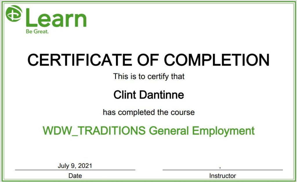 Certificate – Disney University